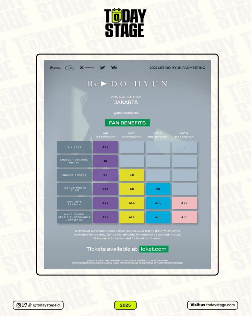 Tickets for 2025 LEE DO HYUN FANMEETING [Re ▶️ DO HYUN] in JAKARTA will go on sale at 12PM (WIB) on 28 May 2025, via loket.com. Stay tuned for the latest updates by following FriedRice Entertainment on Facebook, Instagram and X.