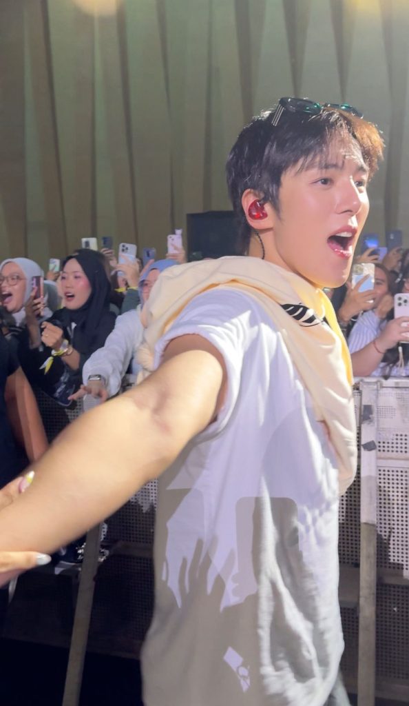 Amid the pounding beat, thousands of fans spontaneously shouted “eeeeee a!” in perfect unison. The chant instantly filled the entire venue, creating an atmosphere that felt like a festive celebration blended with a K-pop concert. Loud, chaotic, but incredibly synchronized.