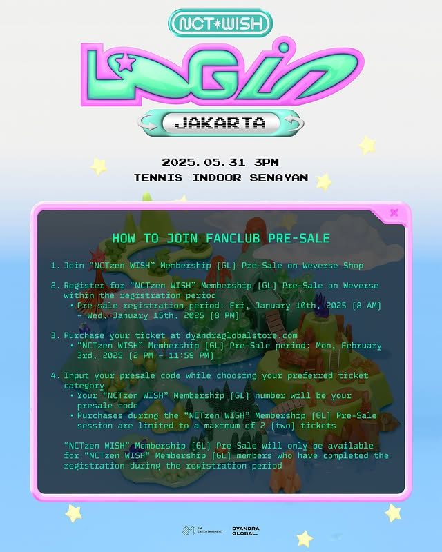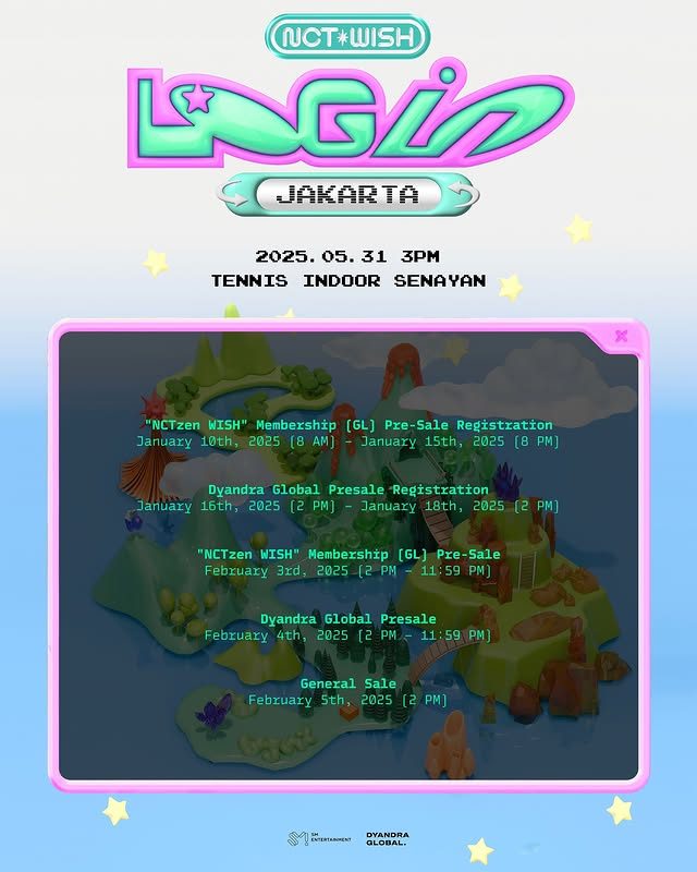 The concert, titled “2025 NCT WISH ASIA TOUR LOG in JAKARTA,” will be held at Tenis Indoor Senayan, Jakarta, on Saturday, May 31, 2025. Various ticket categories are available, ranging from around IDR 1 million to nearly IDR 3 million.