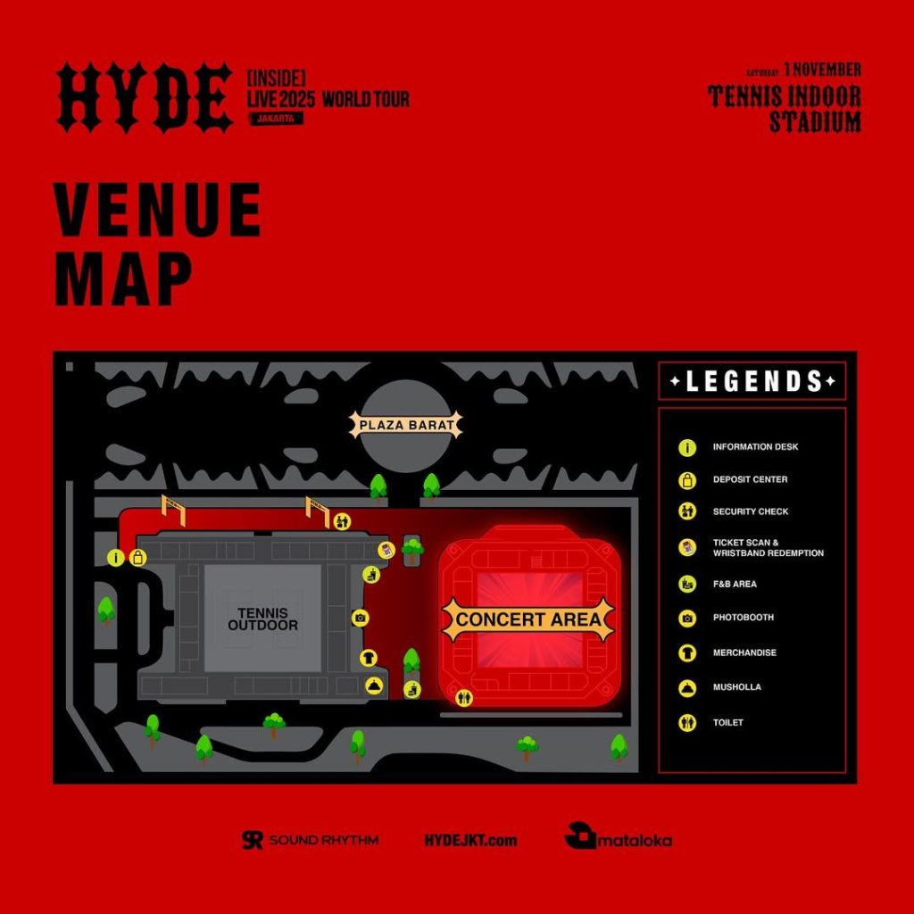 Make sure you arrive on time to avoid any unwanted incidents. Also, remember to note the prohibited items and please keep an eye on your personal belongings to ensure nothing is lost or left behind while you’re in the concert area. A venue map is also available to help you find your location. So, HYDEIST, are you ready to meet HYDE???! For those of you who don’t have tickets yet, tickets are still available via hydejkt.com