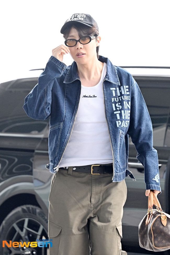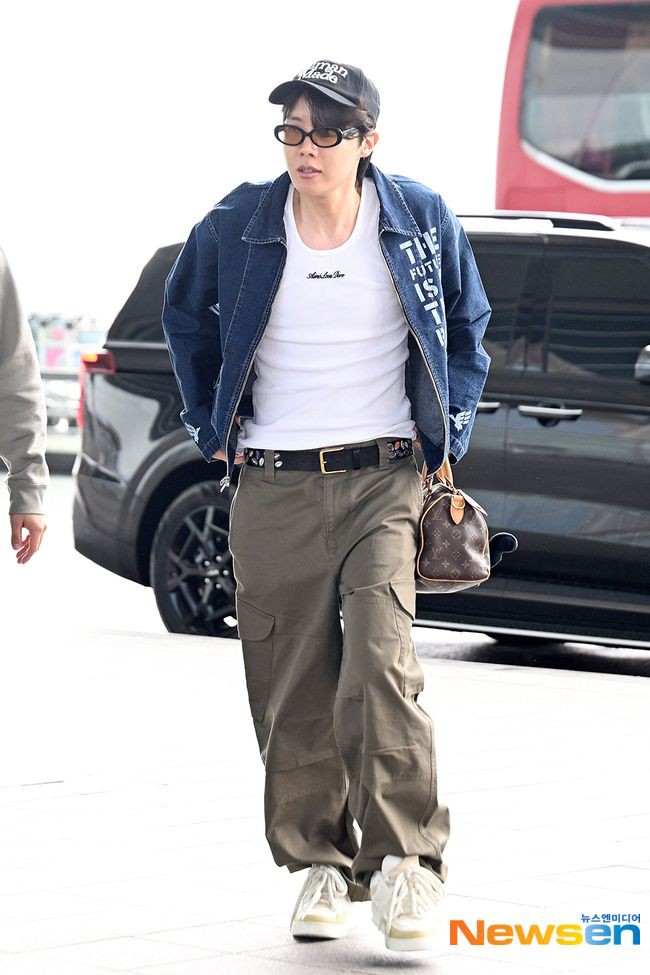 Wearing a casual outfit, J-Hope arrived at Incheon International Airport Terminal 2 to board his flight to Jakarta for his Hope on the Stage tour. On his way to the departure gate, he waved to fans and bowed several times to greet the media.