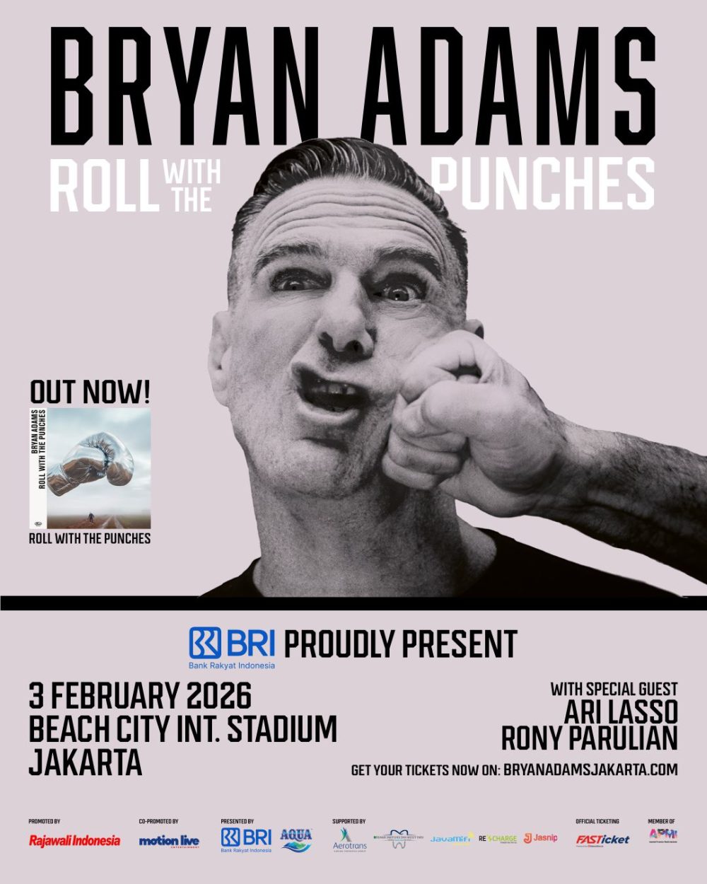 The gathering of three husky-voiced singers on one stage is expected to deliver an emotionally charged musical experience for the audience. Tickets for “Bryan Adams: Roll With The Punches Tour 2026 in Jakarta” are available through the official FASTicket platform. For more information, visit www.bryanadamsjakarta.com.