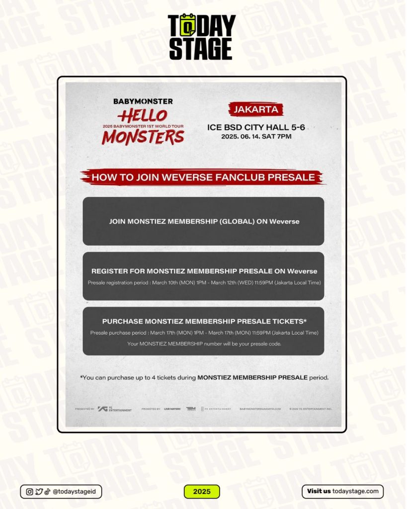 According to the agency’s announcement via its official social media, the BABYMONSTER concert titled “Hello Monsters” will be held in Jakarta on June 14, 2025.