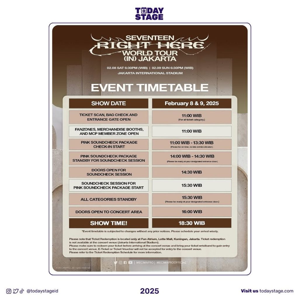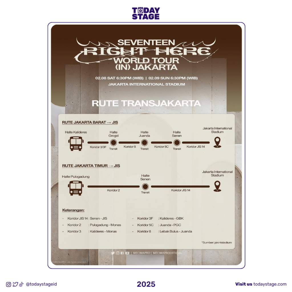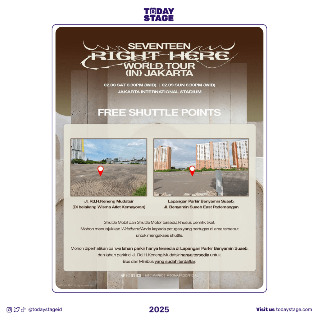 The boy group Seventeen’s concert will be held at the Jakarta International Stadium (JIS) on February 8-9, 2025. The Seventeen concert will begin at 7:00 PM WIB, with venue doors opening at 5:00 PM WIB. Ahead of the concert, the promoter, Mecima Pro, has announced the schedule and process for exchanging tickets for the concert titled “Seventeen [Right Here] World Tour In Jakarta.”