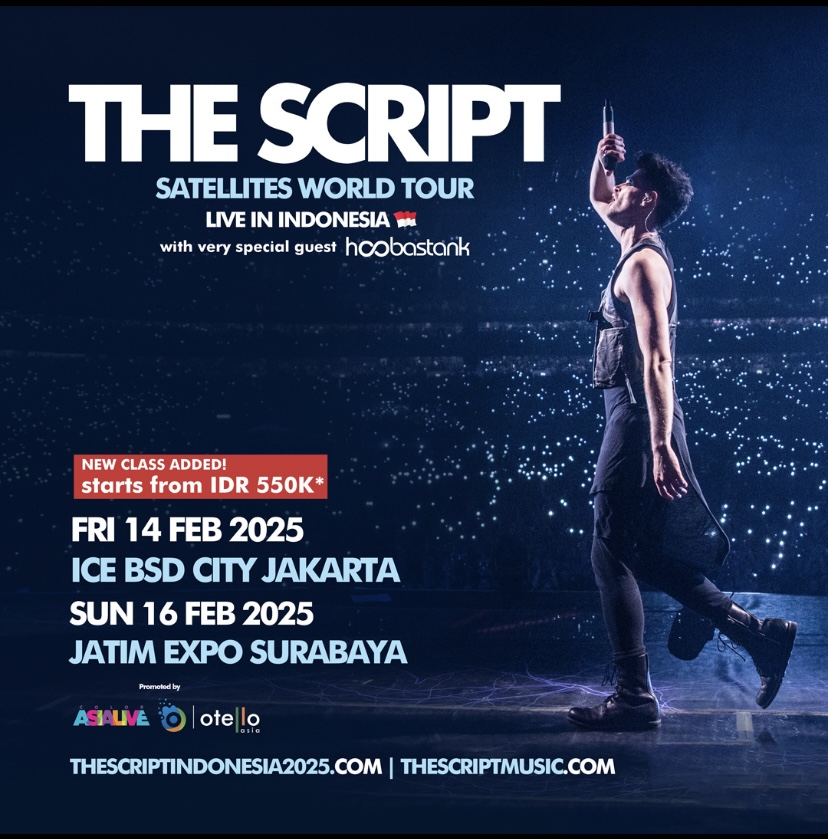 This time, The Script’s concert will be enlivened by the famous American rock band, Hoobastank, who will perform as the opening act for The Script – Satellites World Tour 2025, which will be held in two major cities in Indonesia: