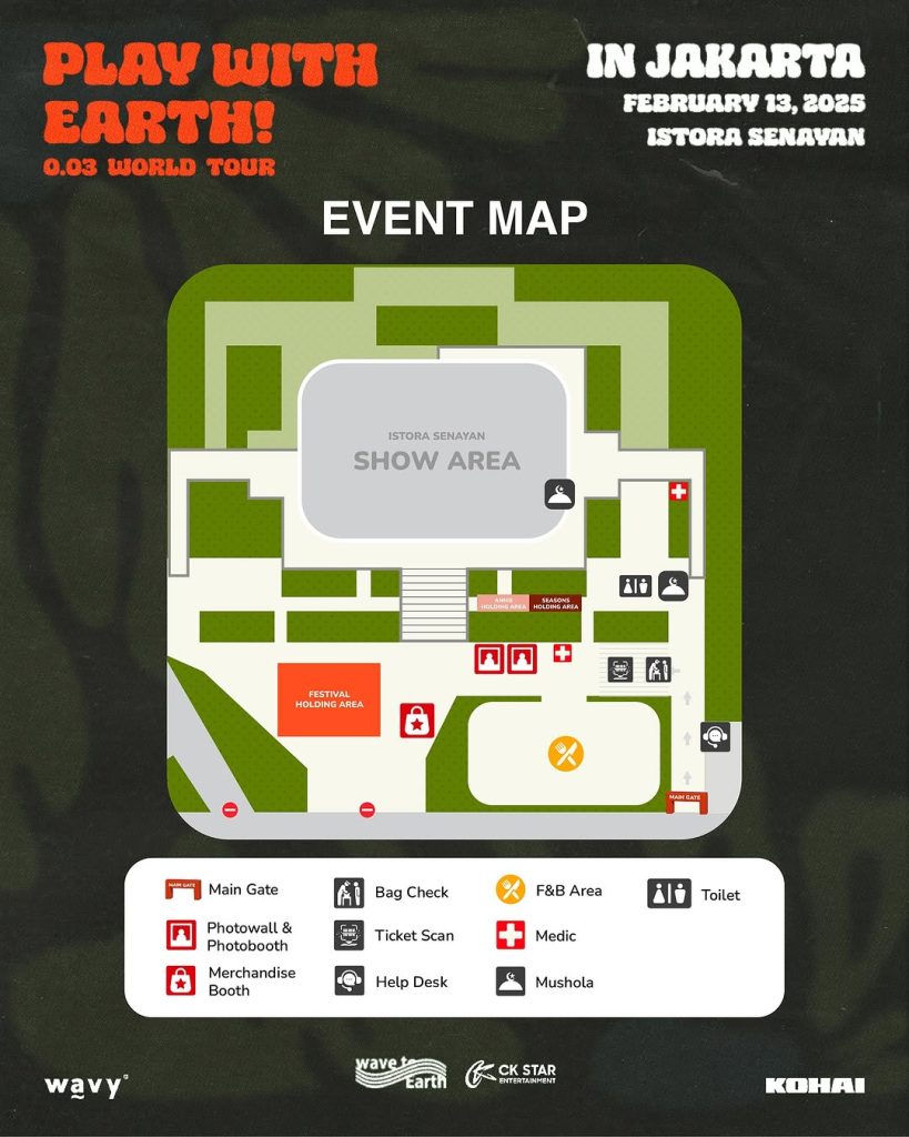 You can also check the venue map to help navigate the event more easily. As shown on the map, there will be a Holding Area, F&B Area, Photowall & Photobooth, Merchandise Booth, Toilets, Medical Station, and Prayer Room available..