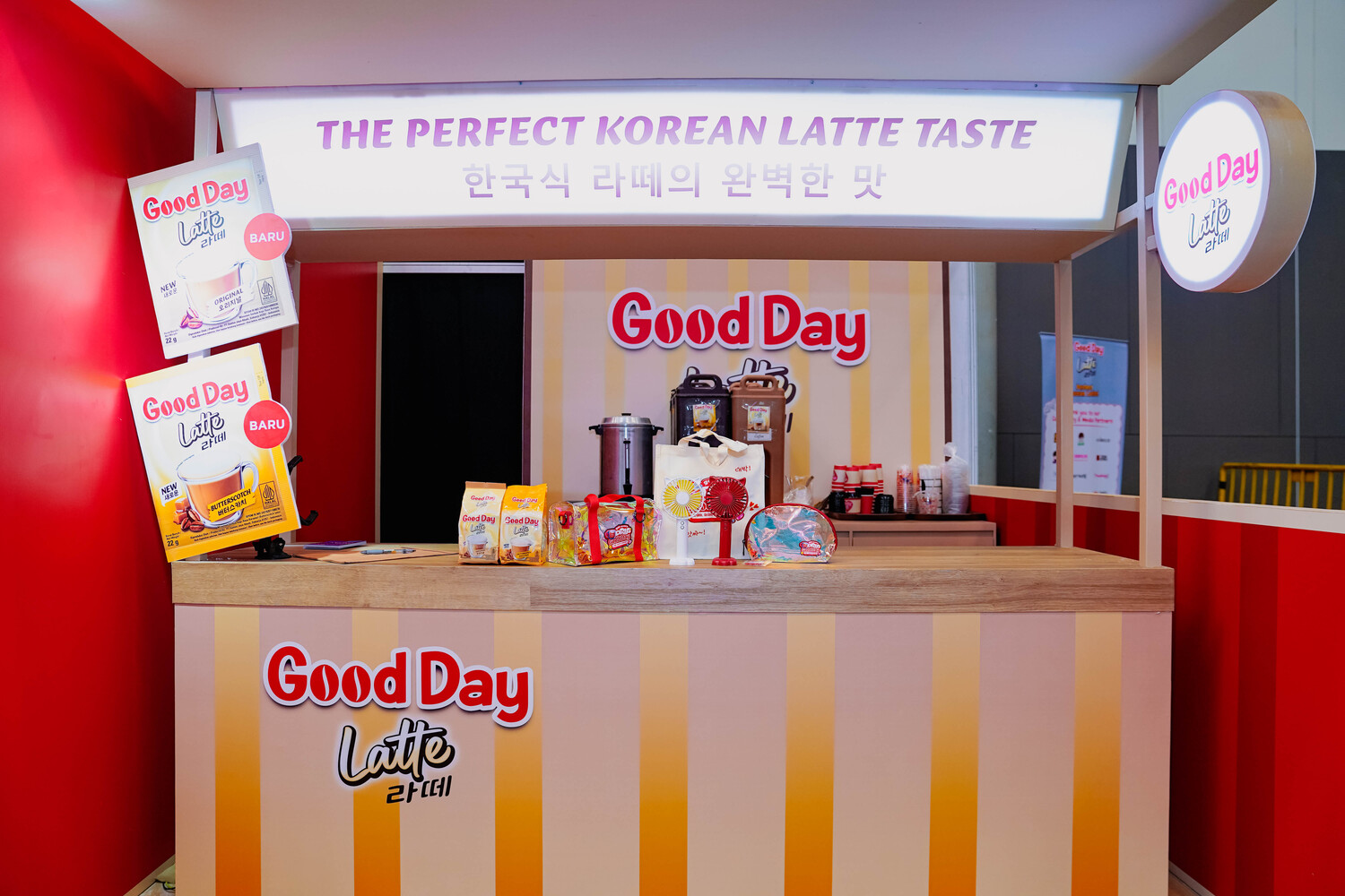 Freebies (Dry Sampling): A special area for handing out free samples of the newest Good Day Latte sachets – Original & Butterscotch flavors.
